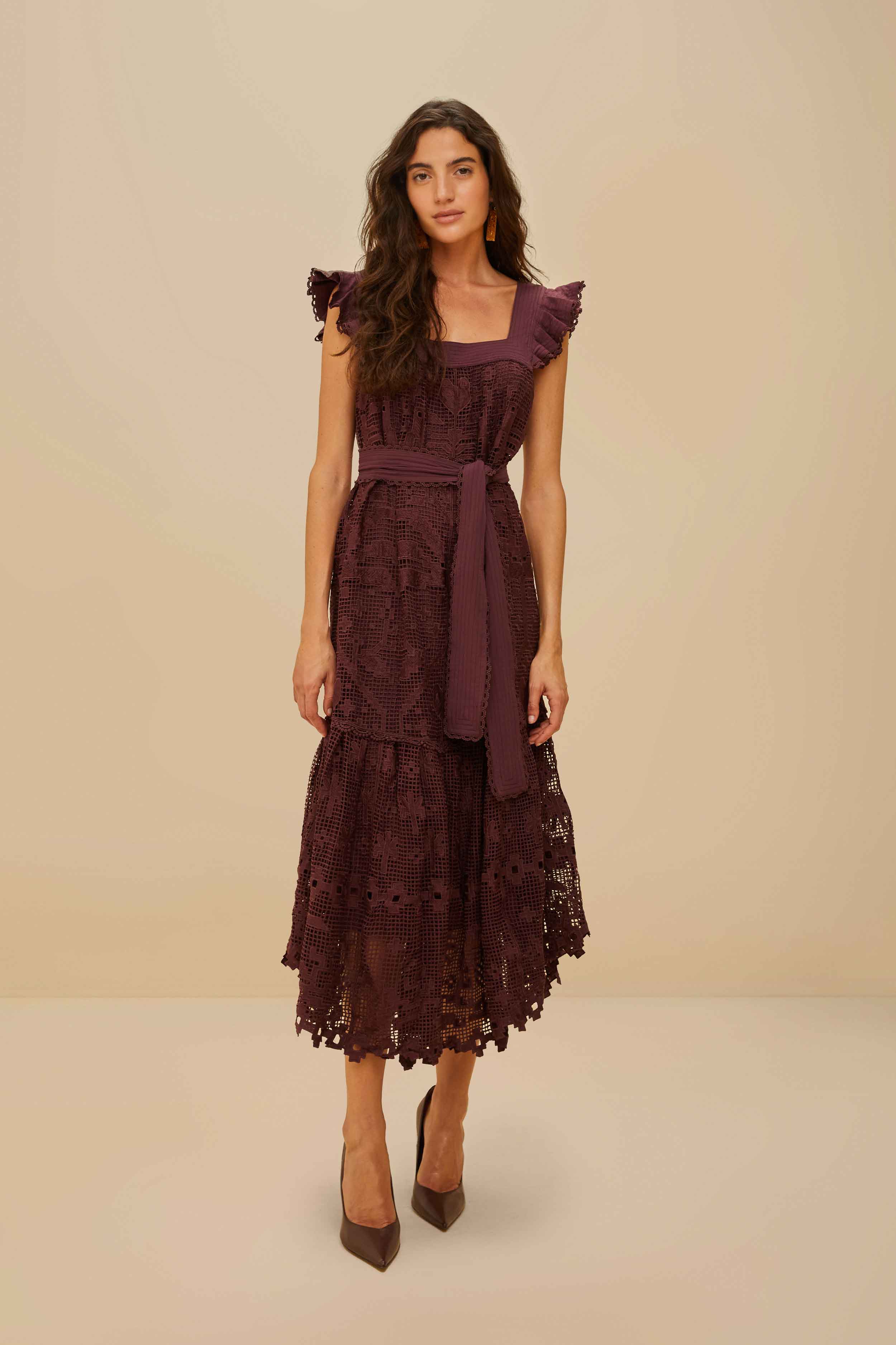 فستان بورسلين جاردن متوسط الطول من كتان يوروفلاكس باللون الأحمر