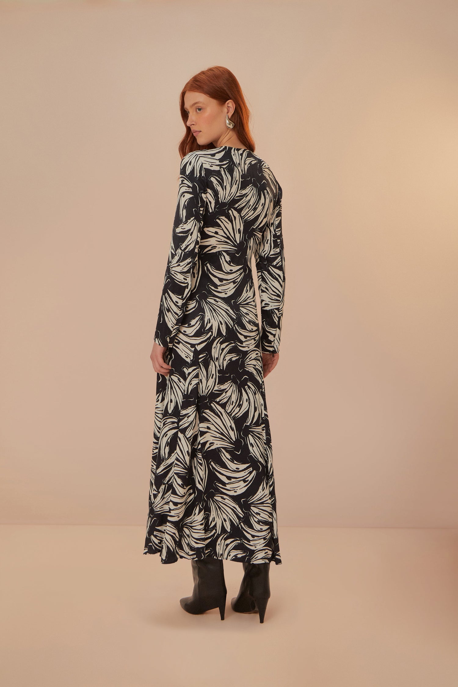 Wrap yourself in the enchanting rhythm of the Black Bossa Banana LENZING ECOVERO Viscose Midi Dress, a harmonious blend of elegance and comfort. Boasting a captivating banana leaf print in contrasting hues, this piece features a flattering round neckline and a gently contoured silhouette that skims gracefully over your form. Crafted from thoughtfully chosen materials, this dress captures the essence of effortless style with a conscious heart. LENZING ECOVERO: the eco-responsible fibers generate up to 50% lower emissions and water impact compared to generic viscose.