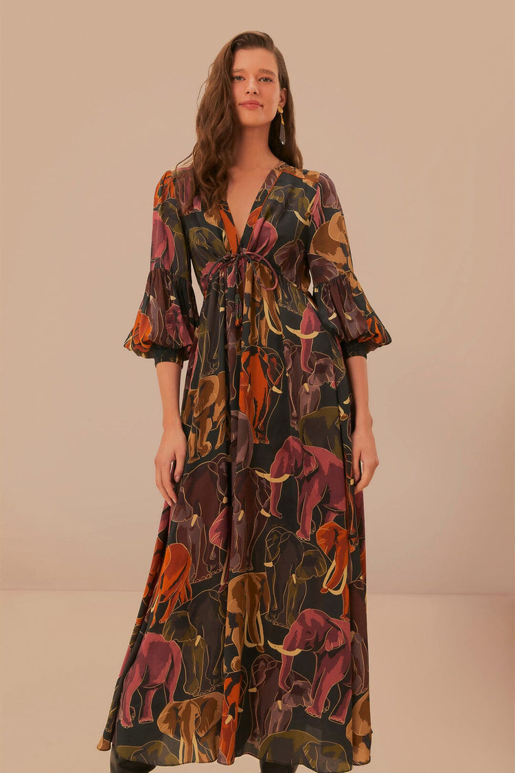 Step into the vibrant world of FARM Rio with the Elephants Green Maxi Dress. This enchanting piece features a playful elephant print in lush green hues, perfect for making a bold yet elegant impression. The delicate V neckline and flowy silhouette create a flattering and comfortable fit, while the intricate ruffles add a touch of whimsy. Embrace the unique charm of this dress and let it transport you to the lively streets of Rio.